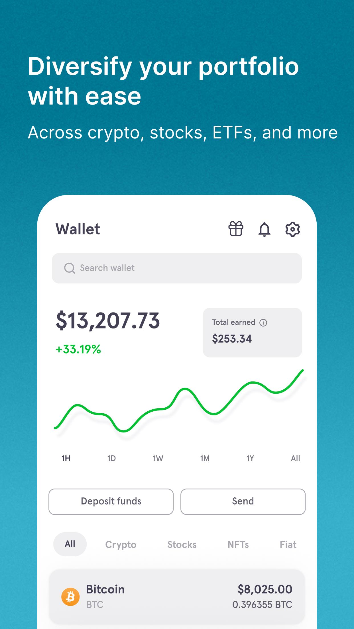 - 通過加密貨幣,股票,ETF等多樣化投資組合。